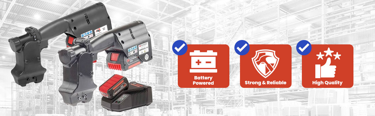 Our team can help you select the correct battery operated tool based on strap width, application, and volume. Call us between 8:00 AM and 4:00 PM EST at 866-787-2790 for product recommendations and availability.