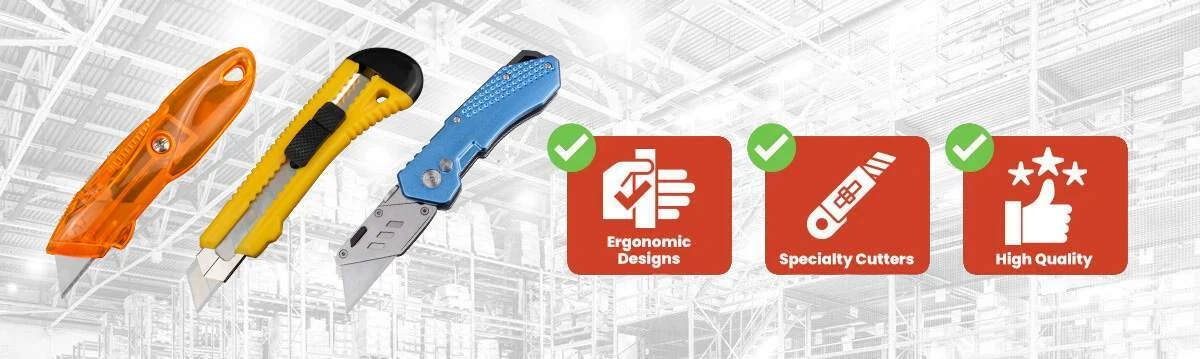 Get the job done with snap-off and folding utility knives built for performance and ease of use. Snap-off knives ensure consistent sharpness with segmented blades, while folding knives deliver compact strength and quick deployment. Perfect for professionals who need reliable cutting tools on the go.